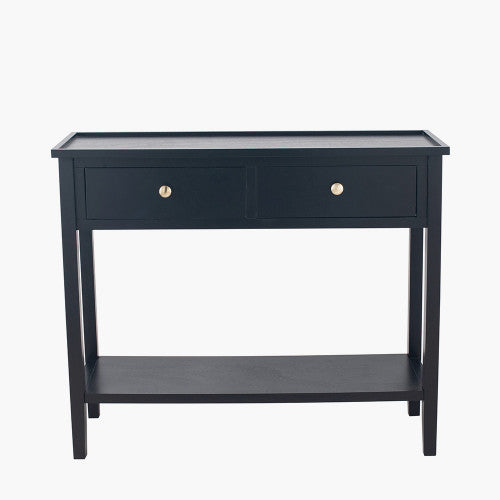 Chelmsford Satin Black Pine Wood 2 Drawer Console Table