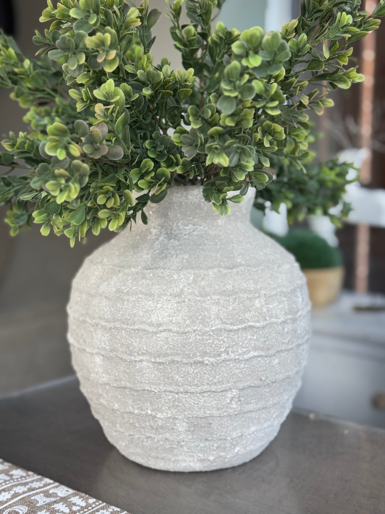 The understated refinement of this grey vase exemplifies modern minimalist design with its clean lines and neutral tone. The tactile surface treatment and monochromatic palette make it a standout decorative vessel that works seamlessly in both contemporary and traditional settings. The subdued grey finish provides an ideal backdrop for both dried and artificial botanical arrangements, while its proportions make it equally impactful as a standalone sculptural element.