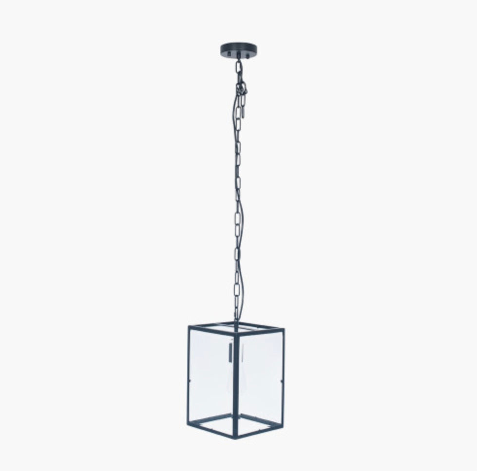 Llewellyn Matt Black Metal and Glass Pendant