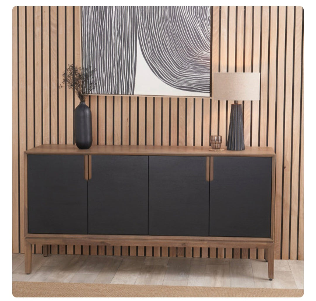 Gio Black and Natural Acacia Wood 4 Door Sideboard
