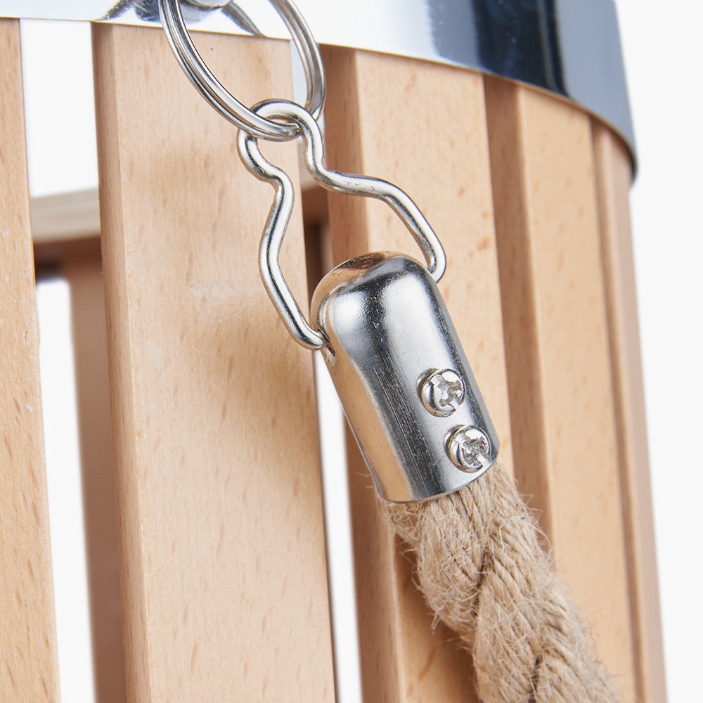 Bring some soft coastal styling into your home with our blonde wood slatted table lamp. The slatted design elegantly diffuses the light around the room, creating a cosy, homely atmosphere whilst the contrasting shiny nickel metalwork adds a contemporary twist.