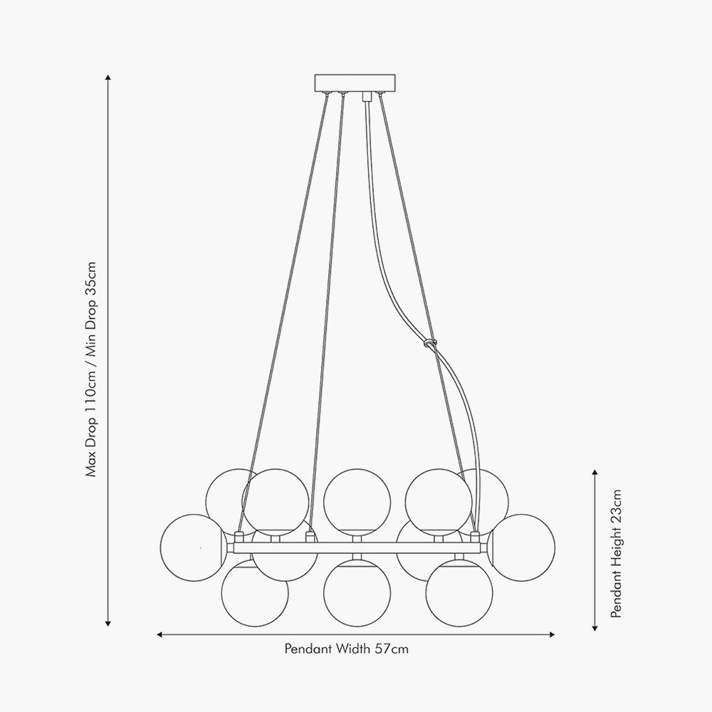 This exquisitely, contemporary lustre glass and champagne metal ring electrified pendant has 15 glass balls creating a futuristic look all on its own. This style of lighting is proving a popular statement light source. Pair with the matching floor lamp and table lamp where required.