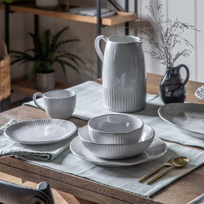 Set of four side plates which are our exclusive own design, featuring an organic shape and textured ridge detailing around the rim. Coordinating pieces available.